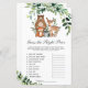 Lámina Woodland adivina el juego de Baby Shower de precio