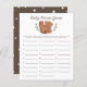 Carta de juego con el nombre del bebé, temática de oso dulce, con ilustraciones de un club rodando en el suelo con follaje verde. Los textos son editables. Juego perfecto para jugar durante la ducha. Se pide a los invitados que escriban los nombres de los bebés que comienzan con cada alfabeto. ¡Quien termine todos los alfabetos primero gana!