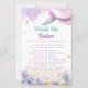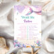Add a splash of laughter to your celebration with this charming mermaid-themed “Would She Rather” game. Featuring a shimmering rainbow tail, soft blush and lavender watercolor details, and golden coastal accents, it blends elegance with fun. A playful way to see who knows the mom-to-be best.
