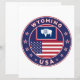 Insignia de Wyoming con bandera de Wyoming y bandera de los colores de EE.UU., forma redondeada. Emblema de Wyoming. Sello de Wyoming. Colección de Estados Unidos.