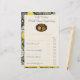 Entre en el encantador mundo de un fiesta de jardín vintage con nuestro delicioso juego de preguntas y respuestas de la pareja Bridal Shower, adornado con un encantador motivo de limón. Lavado con delicadas pinceladas, este diseño, con ramas de limón y flores exquisitas adornan cada objeto. El gris de carbón, el amarillo limón y la paleta crema exudan sofisticación y calidez, creando un ambiente refinado y acogedor. Perfecto para probar sus conocimientos de los hábitos y peculiaridades cotidianos de la novia y el novio, este juego de personalizable añade un toque de encanto natural a cualquier ducha de novias, capturando la esencia de la primavera con su cautivante motivo de limón y flores.