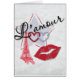 Amor con una torsión francesa. Rojo y diseño azul con la torre Eiffel, la estrella, los corazones, y beso del lápiz labial.