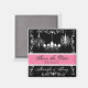 Añada sus nombres y fecha de boda a nuestro elegante blanco y negro con lámpara de araña rosa, ahorre fácilmente el imán de fecha antes de hacer el pedido. Busque las invitaciones de boda que coincidan, notas de agradecimiento, guarde las tarjetas de cita, y mucho más con este diseño de candelabro oscuro y elegante.
