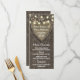 Rayas de cuerda + Tarjetas de menú Boda de la corteza de roble - Presenta un corazón esculpido, luces de cuerda y pequeñas luces de trineo diseminadas en la parte superior. El fondo tiene un fondo de corteza de árbol. Ver la colección completa a continuación.