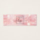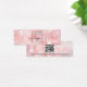 Mini tarjeta de visualización de pendientes con plantilla de logotipo de personalizado central y código QR en un fondo rosa claro con luces purpurinas de bokeh suaves. Se pueden ajustar las guías de asignación agregando y eliminando espacios en el campo de plantilla y moviendo todo el elemento en la herramienta de diseño.