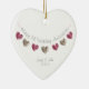 Aniversario del corazón blanco de la lana Boda adorno con un diseño de racimo de punto. Ideal para parejas que celebran su sétimo aniversario de boda de lana/ cobre. Este hermoso diseño incluye espacio para los nombres del marido y la mujer y sus fechas de matrimonio. Todo el texto puede ser personalizado para que el ornamento pueda ser utilizado para cualquier aniversario deseado si lo desea. En este diseño también se ofrecen tarjetas, envolturas de regalo y cojines para los que celebran siete años de matrimonio.