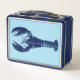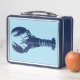 Caja de almuerzo en un boceto digital de una langosta en azul índigo/marino sobre azul claro