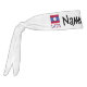 La bandera laosiana roja, blanca y azul con la palabra LAOS debajo , también 8n los colores de la bandera. Arriba, un lugar para un nombre, el tuyo para una apariencia personalizada o el de otra persona para un regalo personalizado.