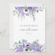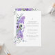 Invitación de boda cristiana en español con flores moradas elegantes, caligrafía y una cruz cristiana.