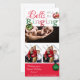 Esta tarjeta fotográfica es una manera maravillosa de desear a sus amigos y familiares una temporada de vacaciones muy feliz. Este diseño tiene un fondo blanco brillante que crea un marco para tres imágenes o fotos. En la parte superior dice: "Sonarán las campanas". Para iniciar tu texto hay campanas de jingle en rojo y verde a los lados opuestos del texto. Debajo hay un lugar para una foto de un paisaje más grande. Debajo de esa foto hay un lugar para dos imágenes cuadradas enmarcadas. En la parte inferior hay una entrada roja para ajustar el texto en blanco. En el lado derecho hay una campana de jingle verde y un lugar para pasar el año.