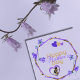 Feliz Día de la Madre, una hermosa tarjeta malva con campanillas (campanula) pintadas que decoran un marco octogonal.