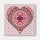 Un clásico corazón del Día de San Valentín oculta una mandala de círculo concéntrico con capas de diseños temáticos de vacaciones como flores, flechas de Cupido y corazones de varios estilos, incluyendo clásicos, paisley y tejidos.
