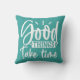 Las Cosas Buenas Se Llevan El Cojín decorativo Del Tiempo. Tiene la opción de cambiar el color de fondo y el tamaño del diseño o dejarlo como está.