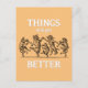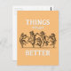 Todos necesitamos ánimo en tiempos oscuros. Dale a tus amigos un destello de esperanza con esta encantadora tarjeta que presenta una ilustración vintage de animales bailando y un mensaje animado. Seguro que les levantará el ánimo. Y ellos te levantarán a ti.