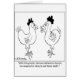 Una gallina con dientes enormes y una botella de "sustancia pegajosa de la dentadura" dice a otra, "con el pegamento apropiado de la dentadura no hay razón de gallinas para no tener dientes."
