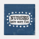 "Las enfermeras tienen más diversión" es un lindo diseño de texto con una forma de acento blanco rodeado de puntos blancos y extravagantes.