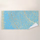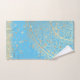 Un elegante loto dorado ornamentado con Mandala sobre un brillante fondo azul turquesa con estrellas doradas que llueven por el fondo del diseño y que tiene un dorado purpurinoso para un mayor brillo. Fantasía caprichosa.