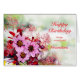 Una tarjeta de cumpleaños para tu abuela. Flores de hellebore rosadas, también conocidas como el rosa de los navidades, colocadas sobre un fondo de hojas rojas del arbusto continuo.