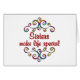 Una manera bonito de que esa hermana querida sepa cómo te sientes. Disfrute de este colorido diseño con floridos y las palabras - Siste4rs hacen la vida especial.