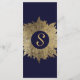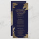 Sencillo, moderno y elegante diseño falso de oro con diseño de hojas dibujadas en azul marino, tarjetas de programa de boda. Este diseño clásico y sofisticado es perfecto para una pareja casera moderna y elegante. Personalice con su propio mensaje en la parte delantera, así como un monograma inicial personalizado en la parte posterior. Todo el diseño de impresión fotográfica.