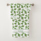 Elegantes hojas verdes y texto sobre el juego de toallas blancas. Ideal para todos. Ideal para un cumpleaños y un regalo de Navidades. El texto se puede personalizar con el texto.