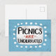 "Los picnics son subvalorados" es un divertido y chunco diseño de texto con una forma de acento blanco rodeado de adorables puntos de polka blancos.