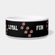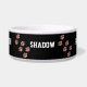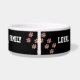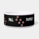 Un único, plato de la comida de perro de la diversión para los amantes animales que consideran a mascotas parte de la familia. El fondo negro con el falso efecto metalizado grabado en relieve, pata color de rosa de moda del oro imprime. Cada sección exhibe una calidad bien conocida del mejor amigo del hombre. De izquierda a derecha lee leal, la diversión, PAL, y a la familia. El centro es reservado para el nombre de su propio perro para un cuenco personalizado de la comida de perro. ¡Gran regalo para cualquiera un mascota querido o un amante y un dueño del perro! No dude en cambiar los rasgos del perrito enumeró con los rasgos para su propio bebé de la piel o un mensaje modificado para requisitos particulares. Visite nuestra tienda de Zazzle.com/angela65* para más regalos para los mascotas y los regalos animales personalizados del amante.