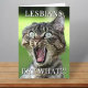 "¡¿Las lesbianas comen qué?!" Graciosa tarjeta de cumpleaños plegada meme de gato impactado