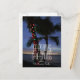 Las luces de navidad adornan una palmera en la puesta del sol en la costa de Maui, Hawaii.