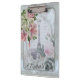 El portapapeles de "El amor de una madre" es un conmovedor tributo al vínculo compartido entre una madre y su hijo. Diseñado con un detalle sentimental, este portapapeles único es perfecto para guardar notas importantes o como una pieza decorativa de sentido común. Ideal como regalo del Día de la Madre, representa la calidez, el cuidado y el amor que las madres dan a diario. Ya sea usado como un aguijón reflexivo o como un regalo significativo, este portapapeles elaborado es un hermoso recordatorio de la inquebrantable conexión entre familia. El cuadro es de la Torre Eiffel con toques de flores rosadas. El color está principalmente en grises y rosados.
