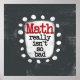 Una divertida pieza tipográfica con tema matemático con las palabras "Las matemáticas no son tan malas". Es gris y blanco con texto negro y rojo y puntos caprichosos blancos que rodean la frase.