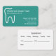 Modelo de tarjetas de visita de recordatorio de cita para mejor dentista en un diseño moderno con gráficos dentarios astutamente creados para incorporar con su nombre de negocio dental y plantilla de recordatorio de cita impresa en la parte posterior para que no esté perdiendo un lado de sus tarjetas. Dejar esto en la ventana de salida del paciente. Presentado en modernas tarjetas de visita de esquina redondeada y papel de alta calidad.