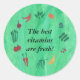 Refuerce que las mejores vitaminas son frescas con estos pegatinas de frutas y verduras. Los productos incluyen espinacas, naranjas, arándanos, pepinos, cerezas, plátanos, judías de cuerda, zanahorias, tomates, espárragos, rábano y batatas.