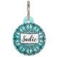 Añádale la dirección del perro y número y nombre de teléfono a esta placa de identificación modificada para requisitos particulares, a la aguamarina azul y a la mandala negra.