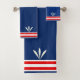 Elegante y moderno plumas blancas en el Bath Towl Set azul, blanco y rojo.