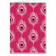 Nota en la impresión textil de pluma de pavo real: plumas rosa pastel, con un ojo en tonos fucsia, burdeos, rosa de coral y negro, sobre un fondo rosa fucsia profunda