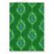 Tarjeta de nota en una huella textil de plumas de pavo real - plumas verdes de cal clara, con un ojo en tonos verdes, cobálticos, azules y aqua, sobre un fondo verde esmeralda profundo