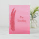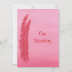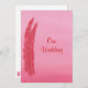 Pintura de dos plumas rojas y rosadas en un fondo rosa mezclado, con Nuestra Boda, impresa en invitaciones de boda de dos caras. Personalice fácilmente el texto de los formularios de plantilla.