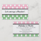 Personalizadas para su familia, estas tarjetas de visita de dos caras están diseñadas con un variado patrón de puntos polka con tamaños alternados de círculos blancos sobre un estilo café rosa y verde. En la parte delantera se lee "¡Vamos a organizar un Playdate!", y en la parte trasera los nombres de tus otros niños, los datos de contacto y dirección están impresos en blanco y negro.