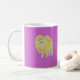 Un perro de oro lindo de Pomeranian a ambos lados de la taza, añade nombre o el otro texto, elige color de la taza.