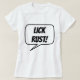 ¡LÁSTIMA! ¡COME VIDRIO! Tee de mujeres básicas. ¡BURLÓN DE Camisetas de doble lado! en burbuja de habla frente a la camiseta y el VIDRIO DE COMIDA! en burbuja de voz sobre la camiseta.