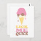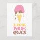 Divertido lamiéndome un slogan rápido texto postal gráfico con un helado derretido. Ideal para los vendedores de helados para promocionar o para fiestas o promociones de verano. Arte gráfico original de Sarah Trett. www.sarahtrett.com para www.mylittleeden.com