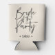 Brinda por la novia con estilo atemporal con este enfriador de latas personalizado de color beige "Novia de la fiesta", personalizado con su nombre para un recuerdo chic y de tonos neutros.