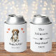 ¡Bebidas por mi cuenta! Celebre su gran día con este enfriador de lata para boda de perro beagle personalizado. Personalice con nombres, fechas y otra información.