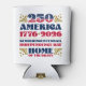 Personalice este enfriador de latas, en lugar de una ilustración de la campana de la libertad, con su propio logotipo o foto en la parte inferior o déjelo como está. Este diseño de tipografía patriótica tiene colores rojo, blanco y azul, con estrellas y rayas y elementos de diseño de color dorado. Es perfecto para celebrar el 250 aniversario de Estados Unidos y es un gran regalo o recuerdo.