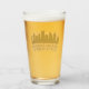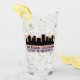 El vaso pint tiene la silueta de la ciudad de Long Beach California con salpicaduras de acuarela y coordenadas de latitud y longitud del mapa