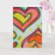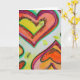 Los corazones amarillos, melocotones y naranjas forman dos corazones concéntricos deslizándose hacia la otra punta a la punta. Los puntos de color amarillo pálido son como el confeti entre los corazones. La pintura acuarela tiene una capa clara de oro y rosa encima. Personalice esta tarjeta con su propio texto e imágenes usando la opción personalizar it. Detalle de la Inspiradora pintura de Palabra "Laugh".