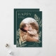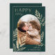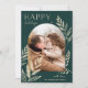 Un diseño de tarjeta de vacaciones chic y elegante que presenta una sola foto vertical o orientada al retrato en un diseño arqueado único, adornado con follaje botánico finamente detallado. "Felices Fiestas" aparece en la parte superior izquierda, con el nombre de su familia en la parte inferior derecha. Una elección refinada de inspiración natural para sus saludos de Navidad 2021.
