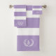 Este diseño presenta un monograma personalizado sobre una lavanda y un patrón impecable a rayas blancas acentuado con una corona de laurel blanca.