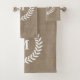 ¡Estas toallas de baño son una necesidad tienen para un cuarto de baño clásico del estilo del cortijo! Fondo elegante de la arpillera del país rústico el falso fija aparte la silueta con clase blanca quebradiza de los laureles que enmarca la letra del monograma de su familia en blanco. Tienen que sensación suave perfecta del país.